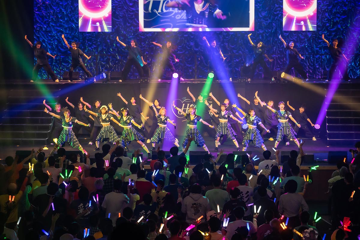 ライブは後半戦に突入。メジャーデビュー曲『クロネッカーの青春の彩り』では、メンバーの熱量に負けじと、ファンも一人一人が最大限のコールでエネルギーをぶつけ、パーティーチューン『古今東西感謝祭』では振りコピをして、会場の一体感を増幅させていく。そして、『ジェラシック・ワールド』では、8体の恐竜がステージに現れ、メンバーと共にダンス!ワンマンライブでは恒例となった光景だが、四足歩行の“新キャラ”が登場するサプライズも。メンバーそれぞれの魂がこもった『彩叫幸福論‐さいきょうこうふくろん-』のパフォーマンスも圧巻だ。