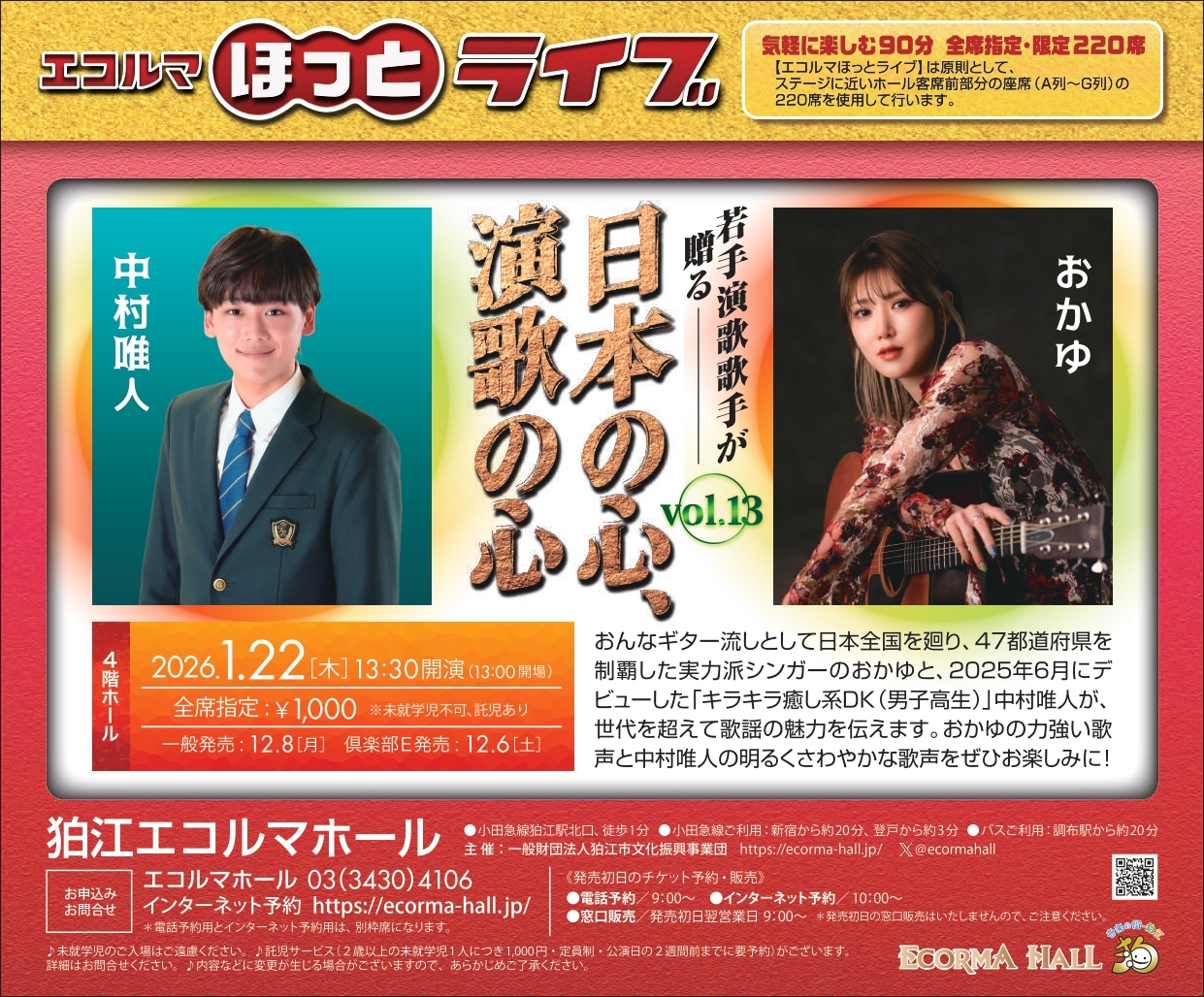 2026年 1/22(木)エコルマほっとライブ 出演決定!