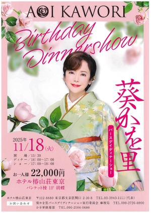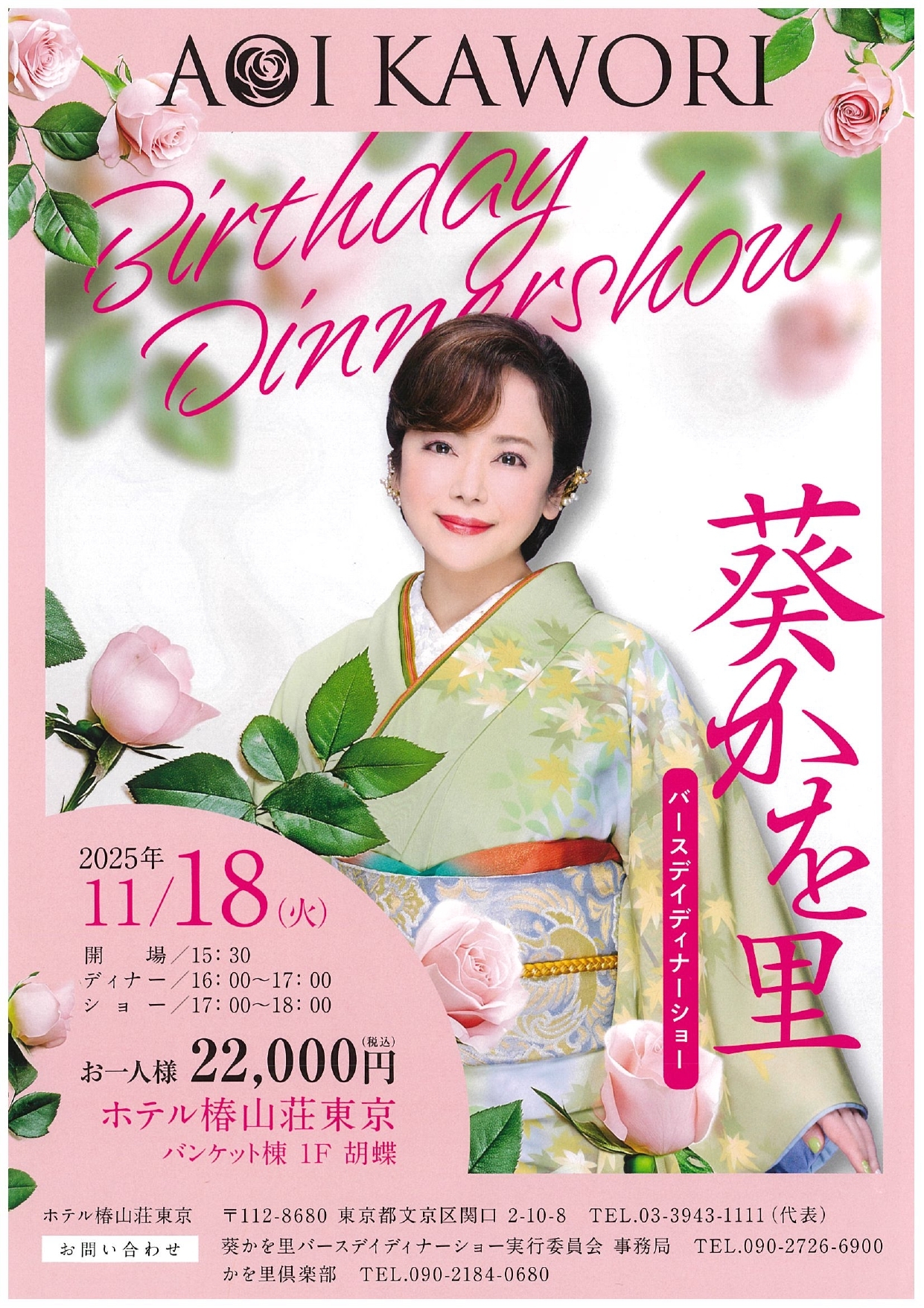 ●お問い合わせ:葵かを里バースデイディナーショー実行委員会事務局 TEL.090-2726-6900