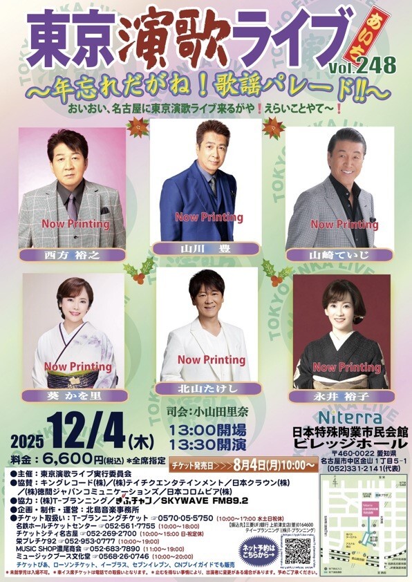 東京演歌ライブ あいち Vol.248 ~年忘れだがね!歌謡パレード!!~ NEW<出演>西方裕之/山川豊/山崎ていじ/永井裕子/北山たけし/葵かを里